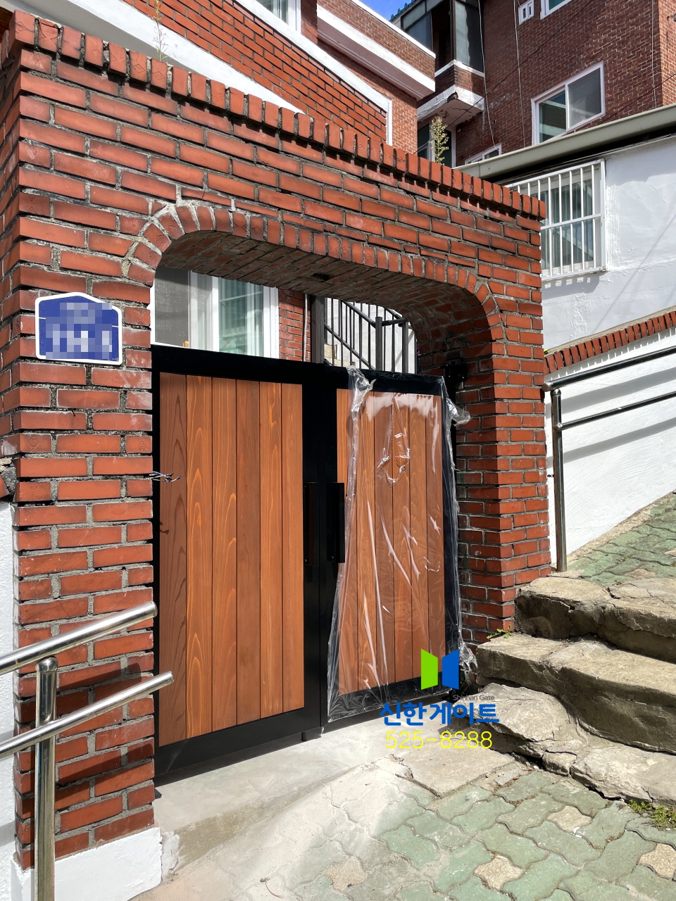 홍은동 목재대문W1740 x H1620 / W890 x H1400(220V개폐기)후레임 : 징크색상목 재 : 밤나무