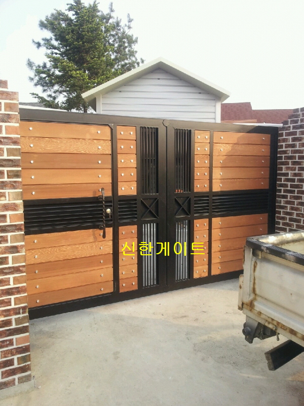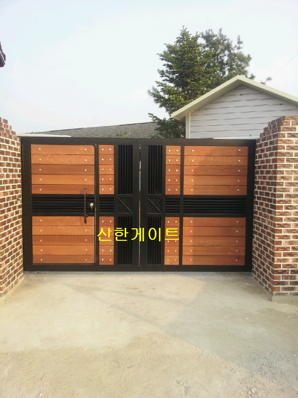 안성 불당리 목재대문 관련링크 목록 본문 W3640xH1900(쪽문W900)목재:적삼목 밤나무색 후레임:아연도금파이프 검정무광자동기계:이태리산 도장:분체열처리 다보:실버 리모콘방식 이전 다음