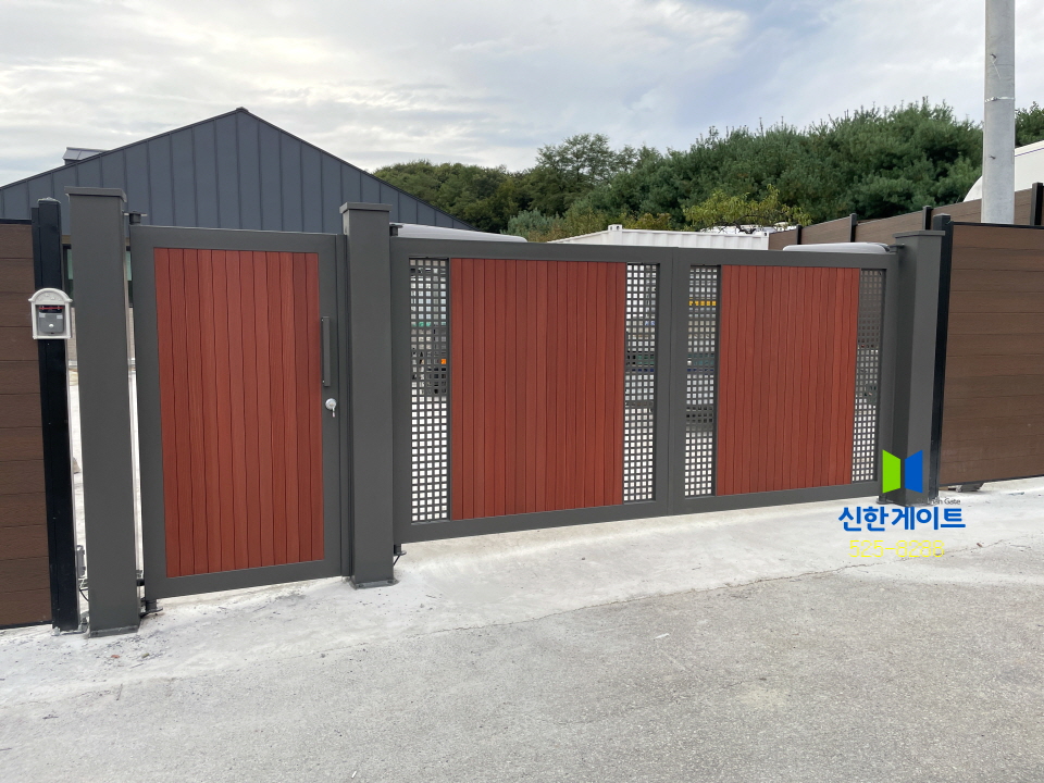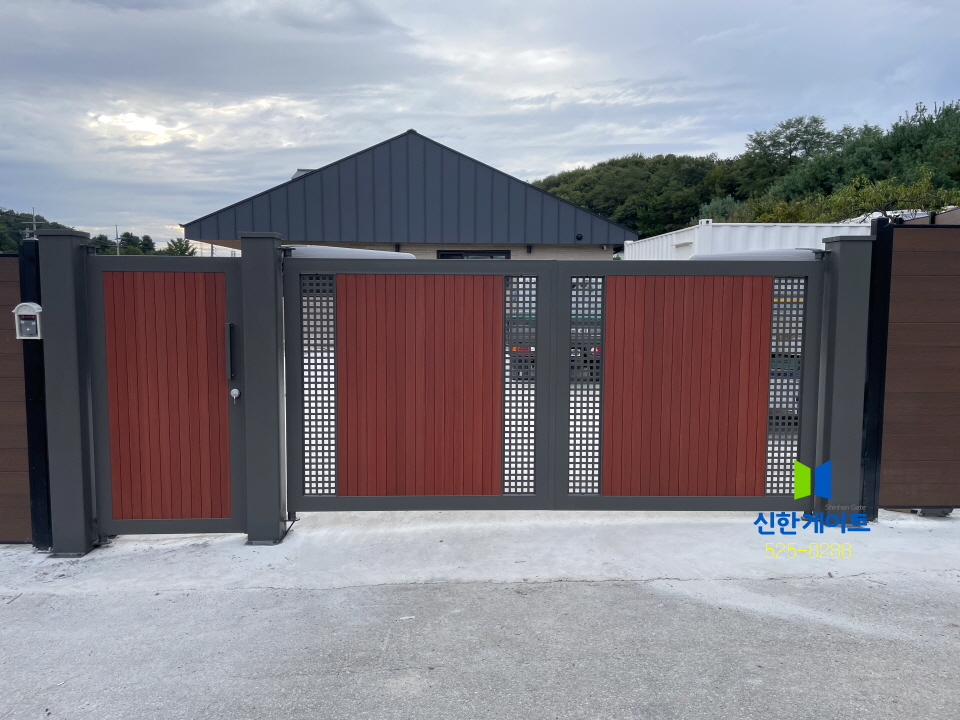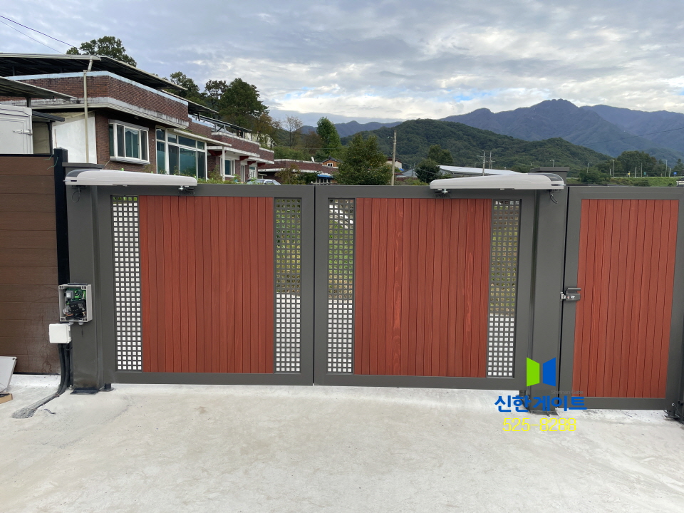 원주소초 목재 스윙자동대문 관련링크 목록 본문 강원 원주시 소초면목재 스윙 자동대문 W3500 x H1640 / W1000 x H1780후레임 : 기와진색목재 : 티크색220V개폐기기둥 : 200x200x2000x3EA 이전 다음