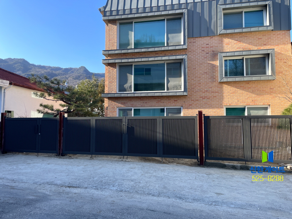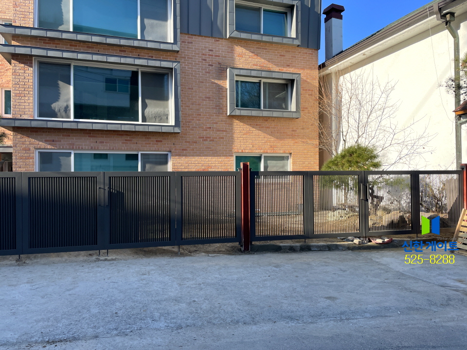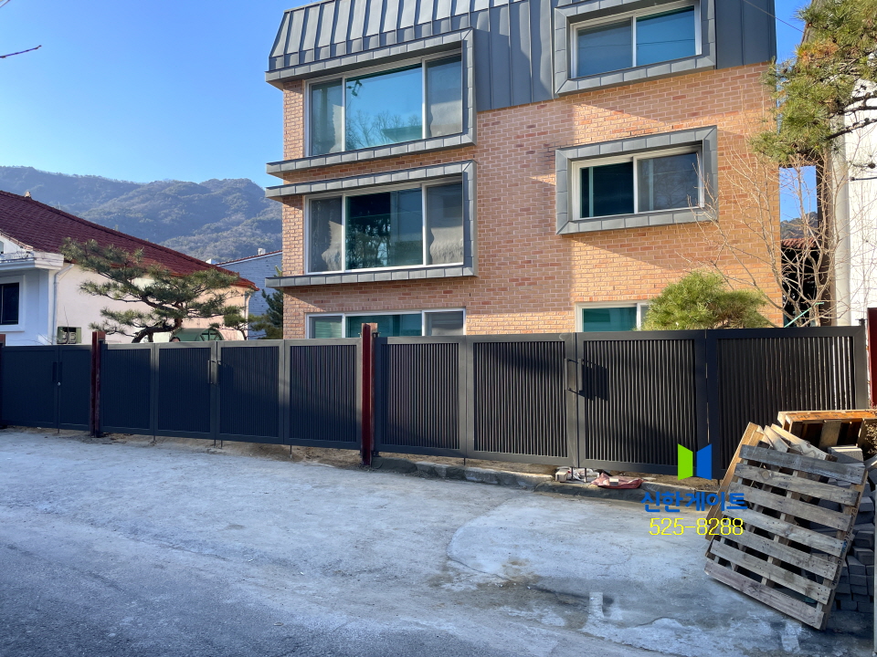 수유동 철재 갤러리대문 관련링크 목록 본문 수유동 철재 갤러리대문W2880(1820+1000(미는문)) x H1500 / W5510 x H1500 / W5480 x H1500색상 : 기와진회색상부마구리 : 75x75x1500x1EA / 100x50x2000x1EA 이전 다음