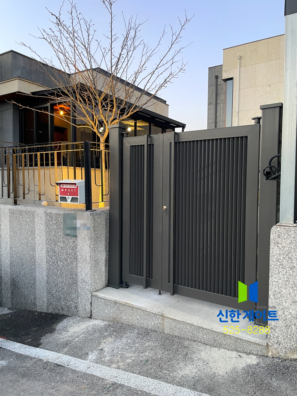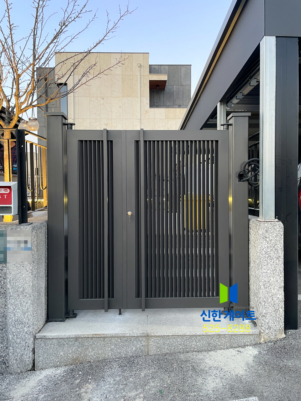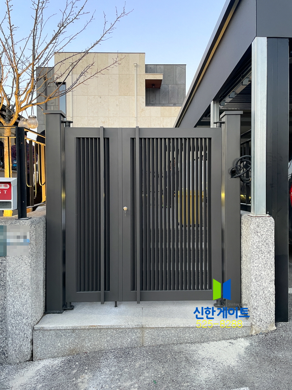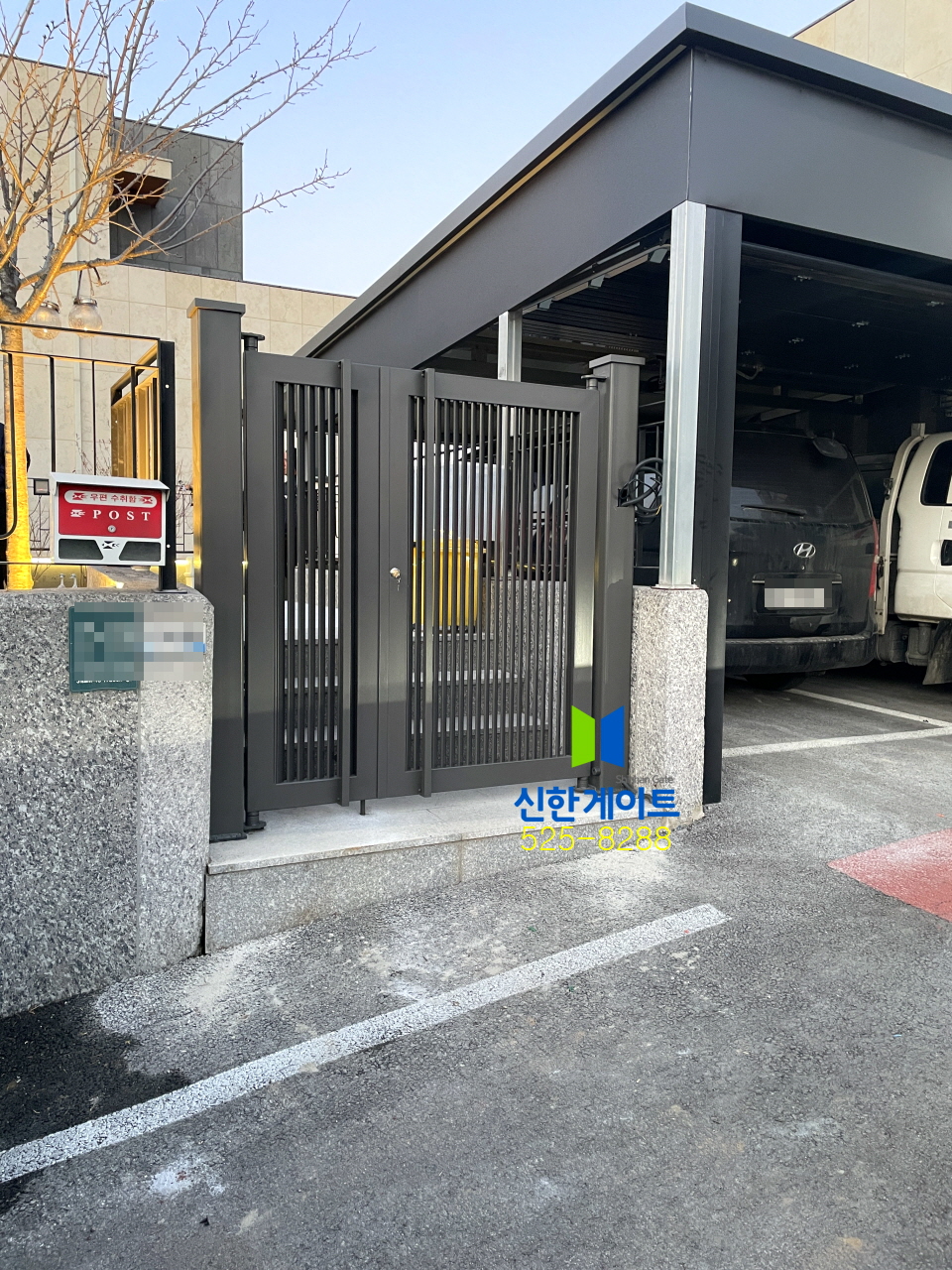 용인보라 갤러리 철대문W1590 x H1760색상 : 기와진220V개폐기(당기는용)기둥:150x150xH2000x2EA