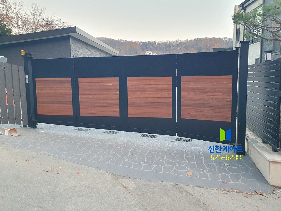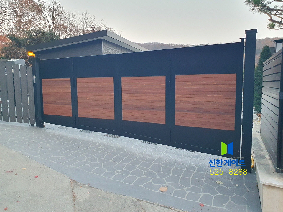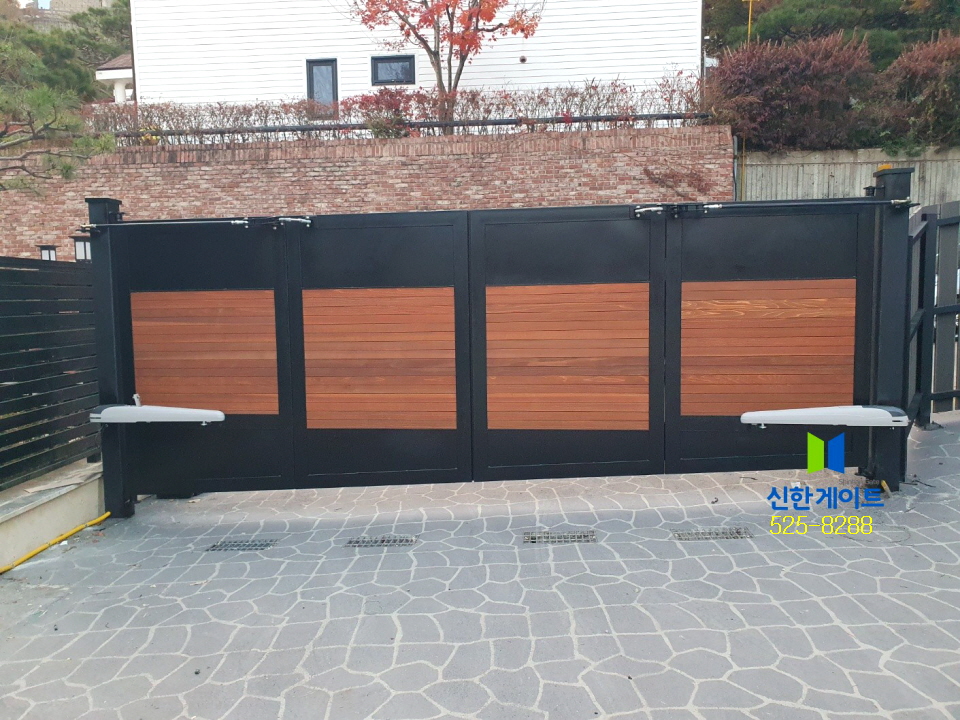 용인동백목재 접이식 자동대문W1280 x H1720~H2000 x 4EA상부 : 무레일하드웨어부착후레임 : 검정색목재 : 밤나무
